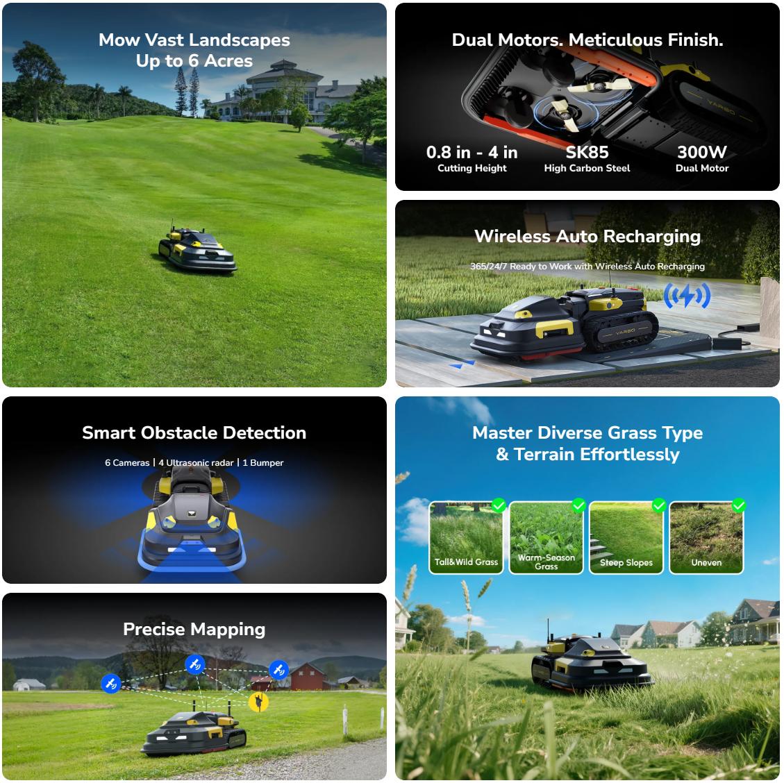 A Yarbo Lawn Mower Pro kettős 300 W-os motorokkal rendelkezik, amelyek 2500 W csúcsteljesítményt nyújtanak, új, opcionális egyenes pengékkel és továbbfejlesztett vágási magasságtartománnyal, amely 0,8 hüvelykig (2 cm) terjed. Ezekkel a fejlesztésekkel a Yarbo Lawn Mower Pro kiválóan alkalmas lakossági gyepápolásra, és használata kiterjed a kereskedelmi alkalmazásokra is. Tökéletes mind hideg, mind meleg évszakban növő fűfajtákhoz, valamint nedves, sűrű és hosszú fűhöz is.